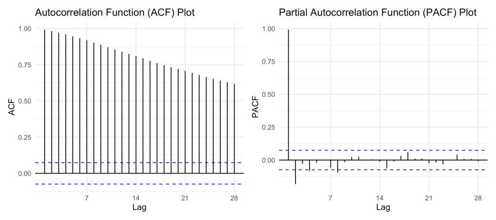 I ultimately decided to use ARFIMA to model the time series data because although the data passed the Augmented Dickey-Fuller test and was proven to be stationary, the ACF plot did not display a significant cutoff. This could be indicating that the data is long-range dependent and ARFIMA is the best-suited model for this type.